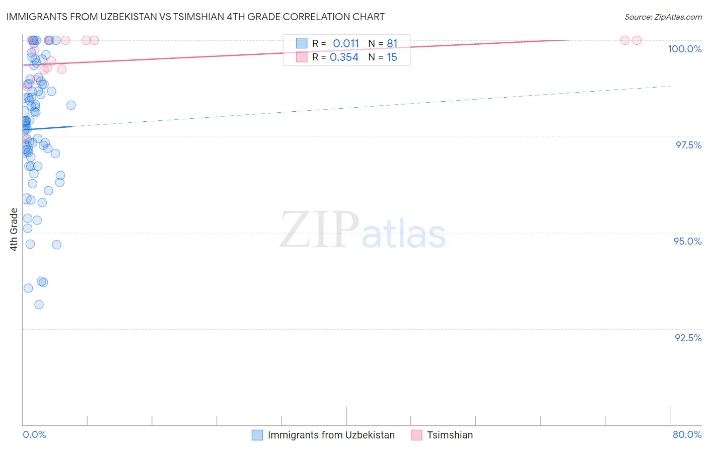Immigrants from Uzbekistan vs Tsimshian 4th Grade Correlation Chart