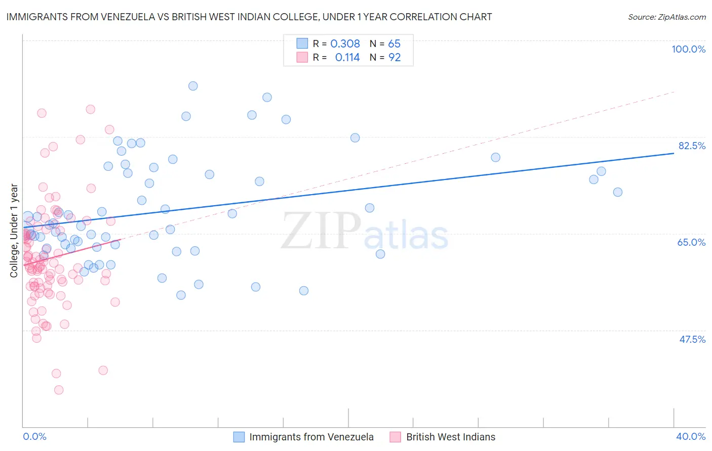 Immigrants from Venezuela vs British West Indian College, Under 1 year Correlation Chart