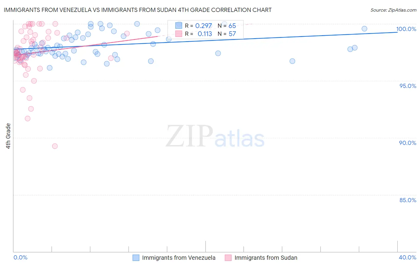 Immigrants from Venezuela vs Immigrants from Sudan 4th Grade Correlation Chart