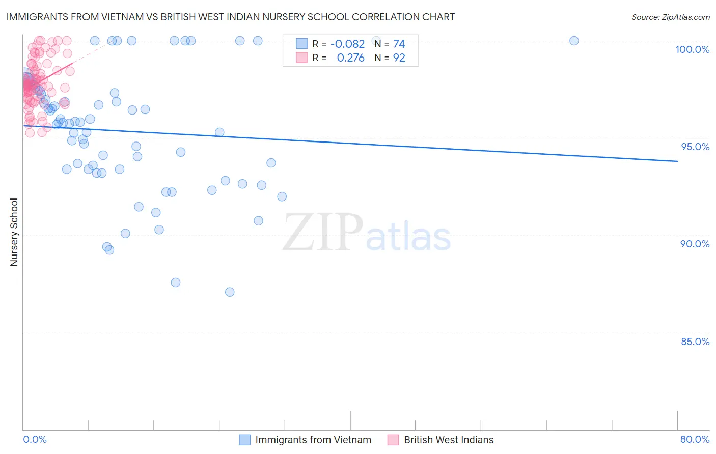 Immigrants from Vietnam vs British West Indian Nursery School Correlation Chart
