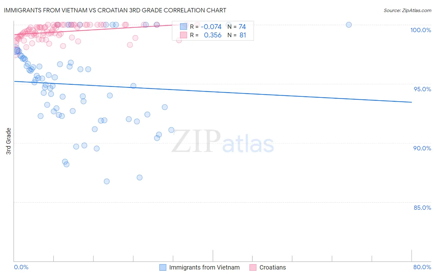 Immigrants from Vietnam vs Croatian 3rd Grade Correlation Chart