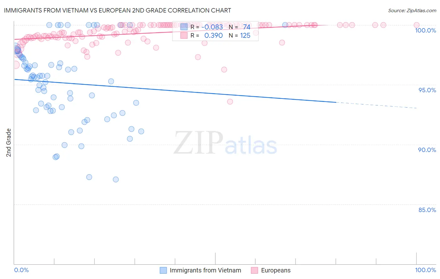 Immigrants from Vietnam vs European 2nd Grade Correlation Chart