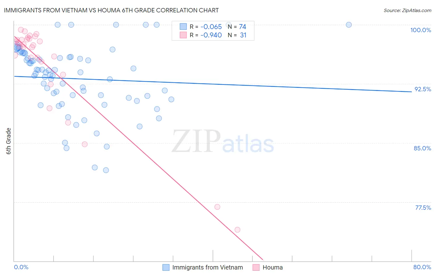 Immigrants from Vietnam vs Houma 6th Grade Correlation Chart