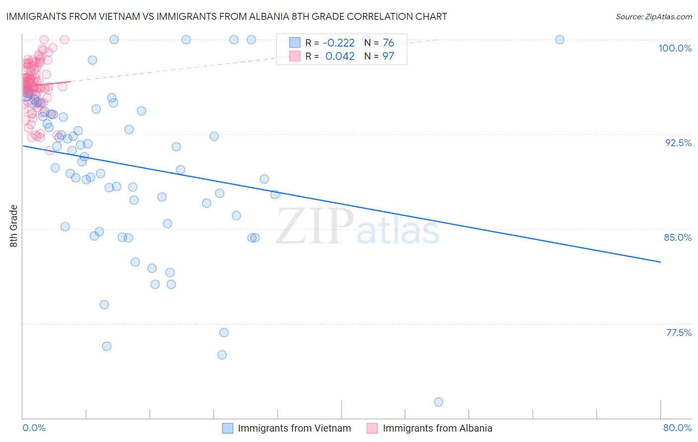 Immigrants from Vietnam vs Immigrants from Albania 8th Grade Correlation Chart