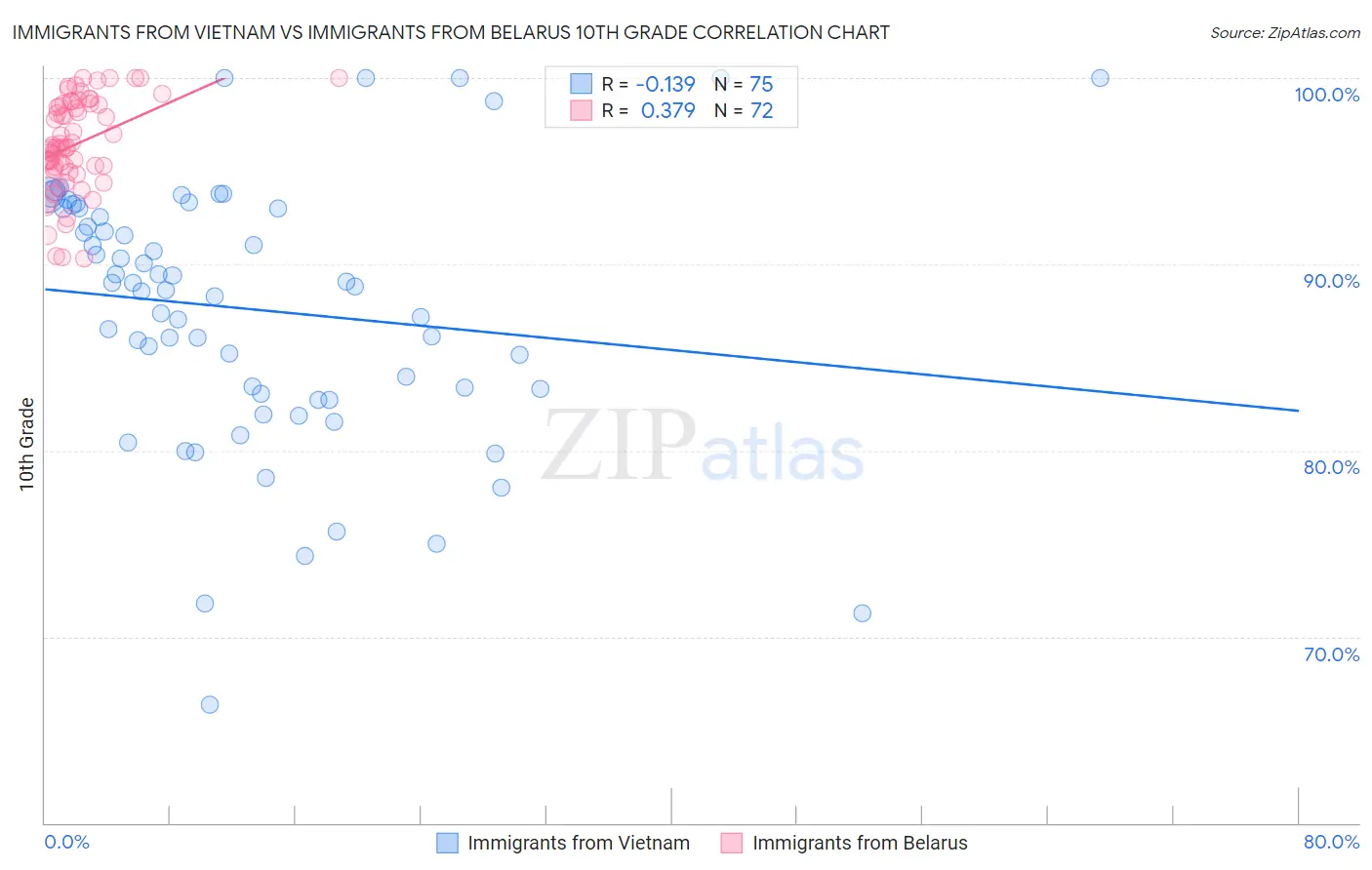 Immigrants from Vietnam vs Immigrants from Belarus 10th Grade Correlation Chart