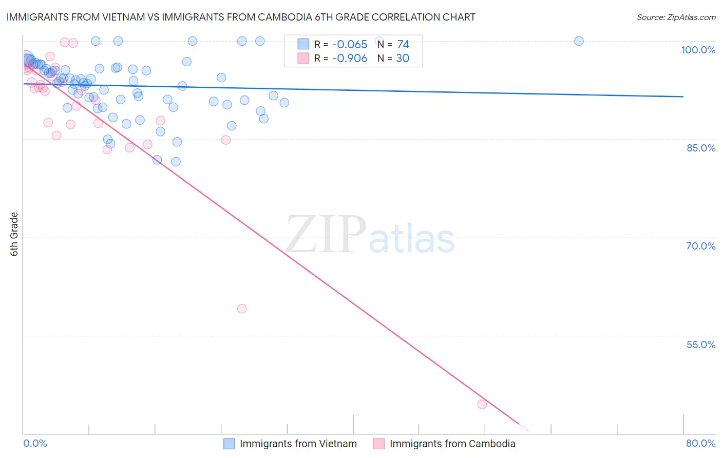 Immigrants from Vietnam vs Immigrants from Cambodia 6th Grade Correlation Chart