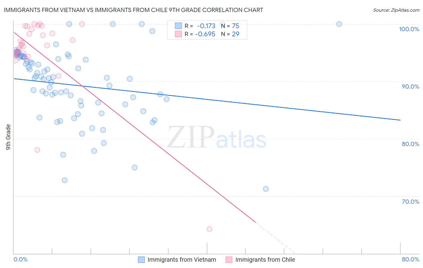 Immigrants from Vietnam vs Immigrants from Chile 9th Grade Correlation Chart