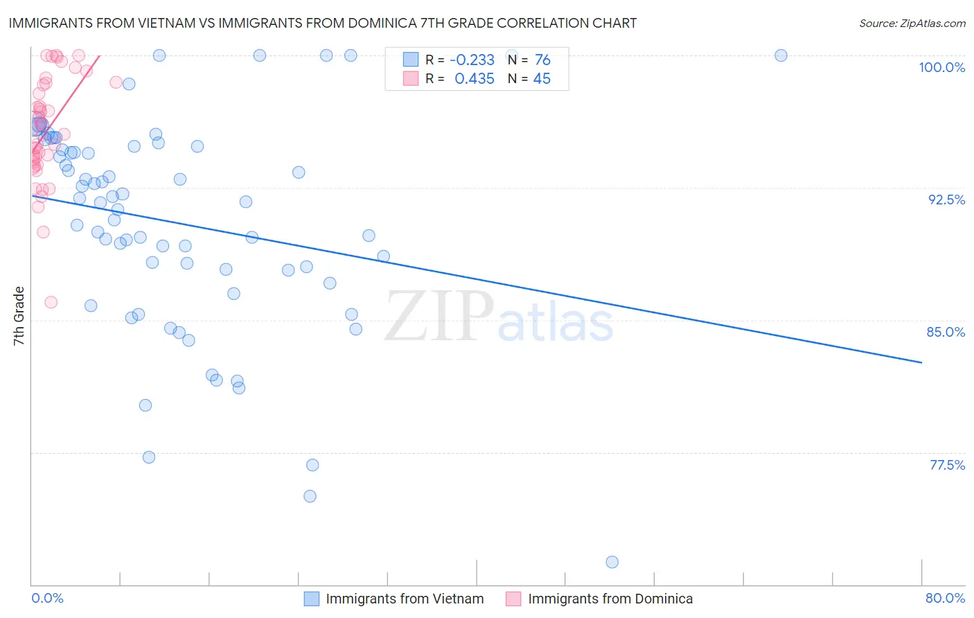 Immigrants from Vietnam vs Immigrants from Dominica 7th Grade Correlation Chart