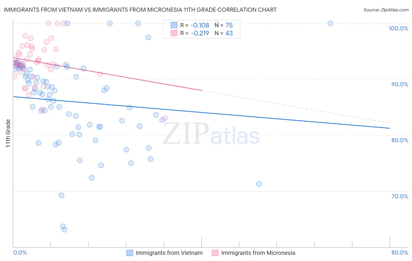 Immigrants from Vietnam vs Immigrants from Micronesia 11th Grade Correlation Chart