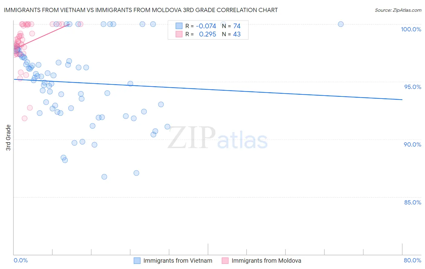 Immigrants from Vietnam vs Immigrants from Moldova 3rd Grade Correlation Chart