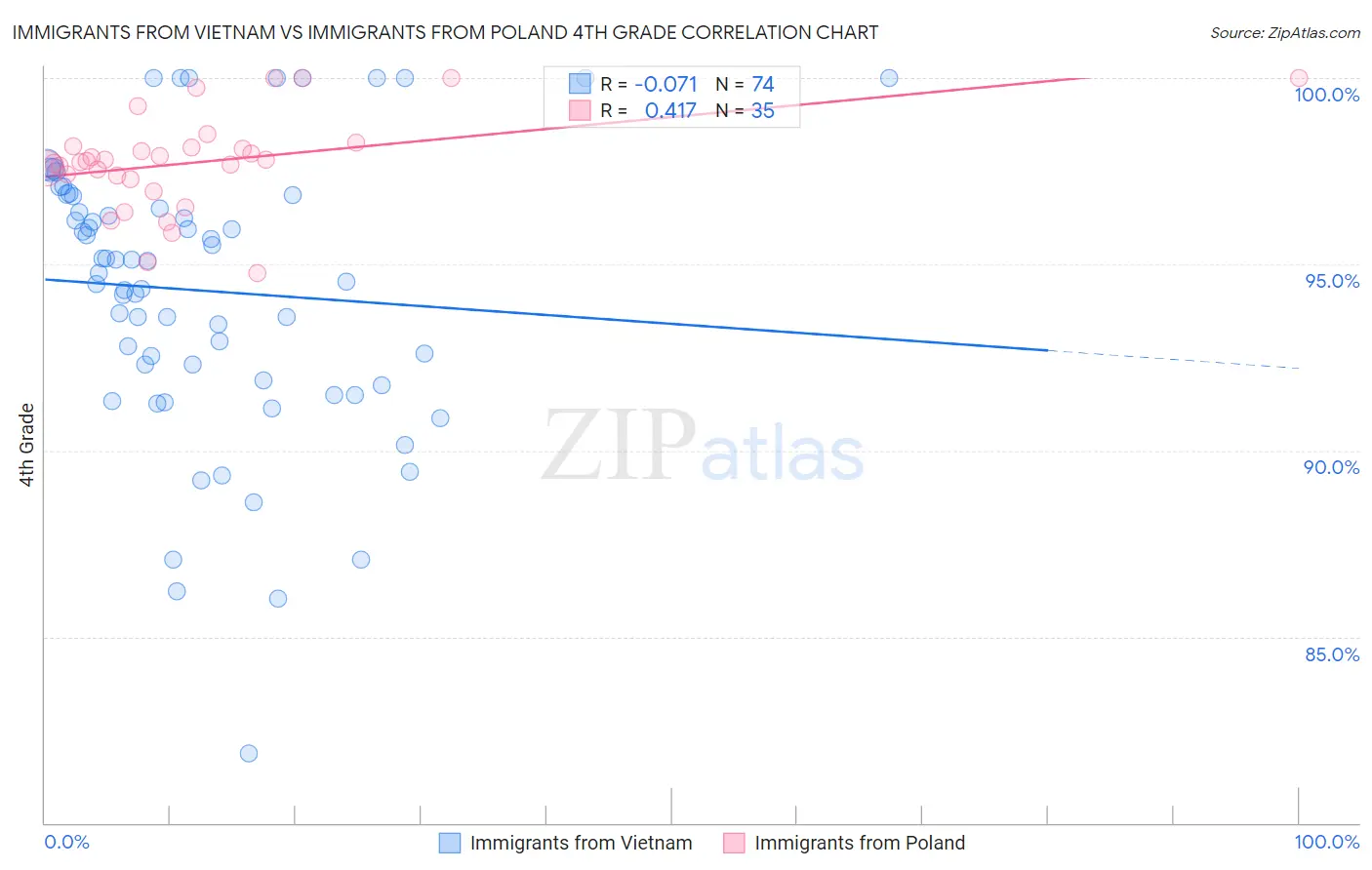 Immigrants from Vietnam vs Immigrants from Poland 4th Grade Correlation Chart