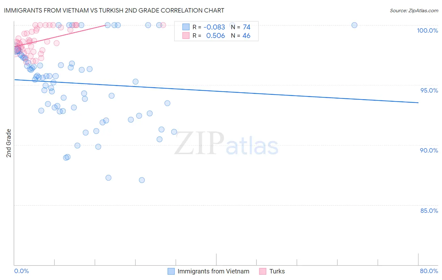 Immigrants from Vietnam vs Turkish 2nd Grade Correlation Chart