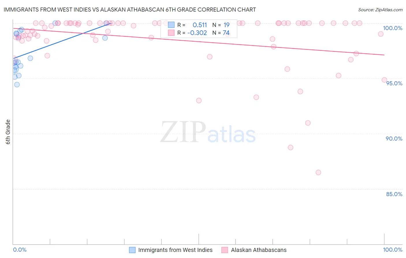 Immigrants from West Indies vs Alaskan Athabascan 6th Grade Correlation Chart
