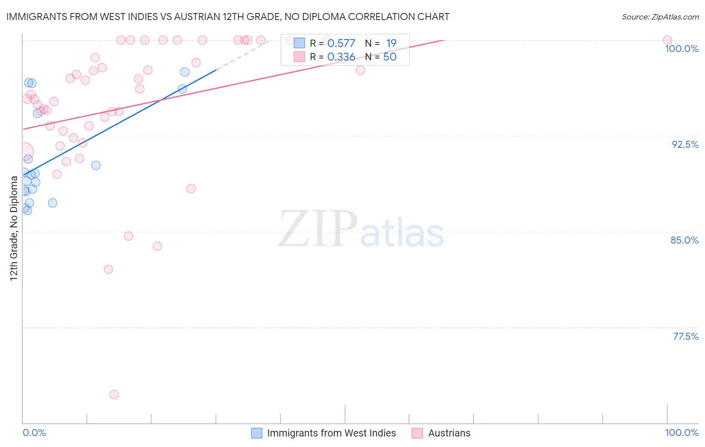 Immigrants from West Indies vs Austrian 12th Grade, No Diploma Correlation Chart