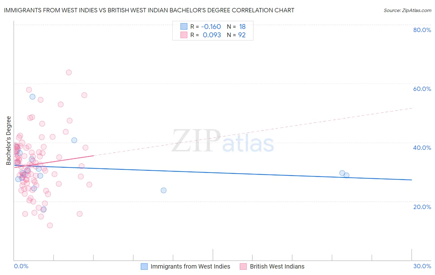 Immigrants from West Indies vs British West Indian Bachelor's Degree