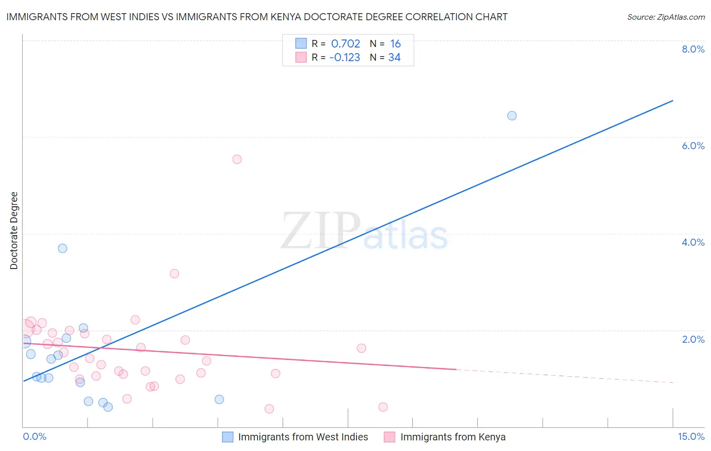Immigrants from West Indies vs Immigrants from Kenya Doctorate Degree Correlation Chart