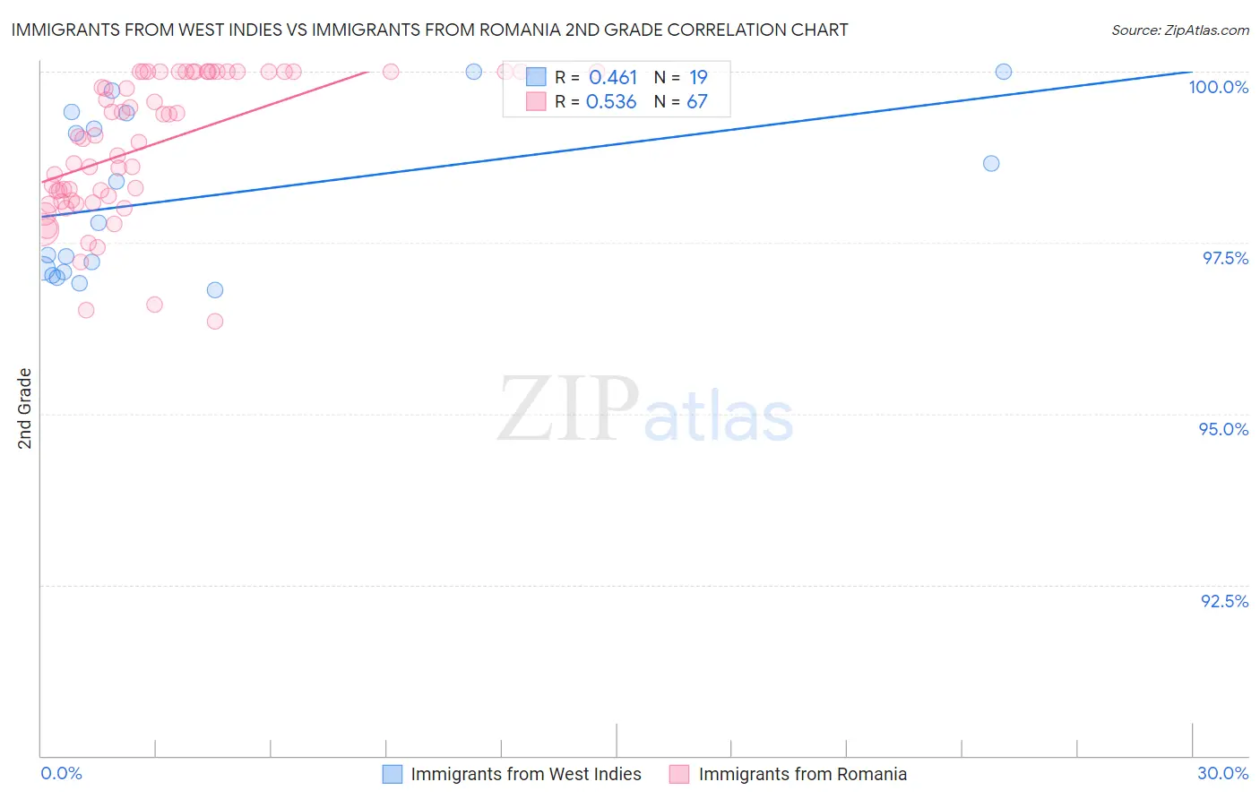 Immigrants from West Indies vs Immigrants from Romania 2nd Grade Correlation Chart