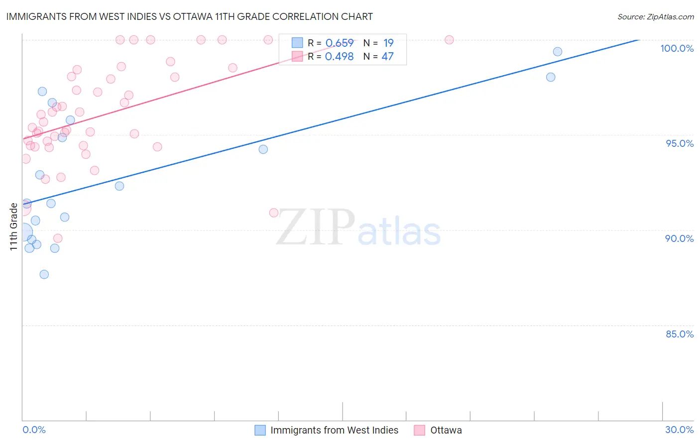 Immigrants from West Indies vs Ottawa 11th Grade Correlation Chart