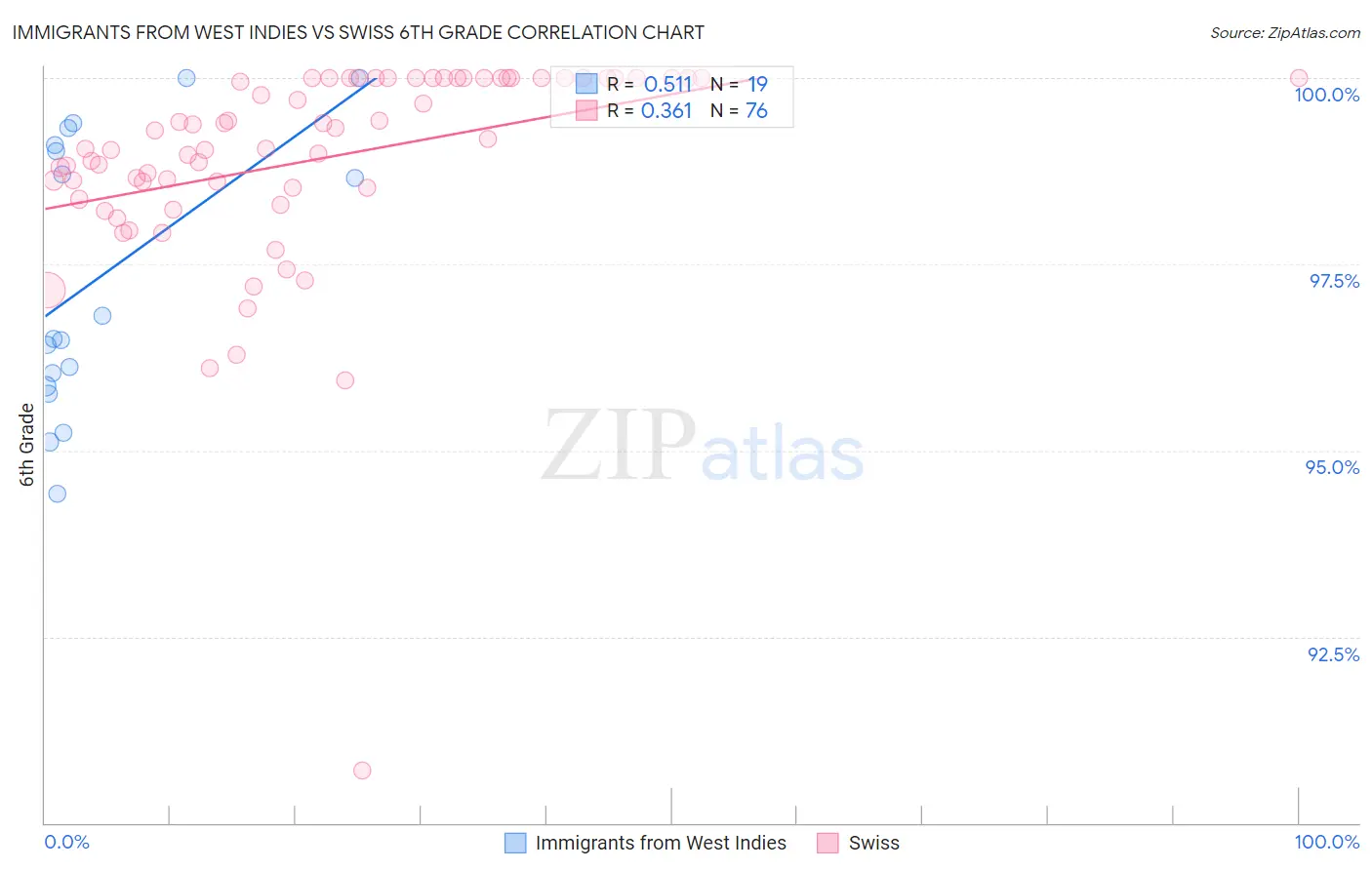 Immigrants from West Indies vs Swiss 6th Grade Correlation Chart