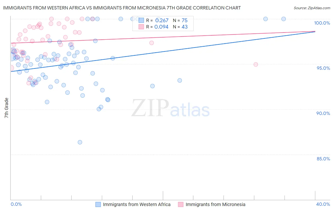 Immigrants from Western Africa vs Immigrants from Micronesia 7th Grade Correlation Chart