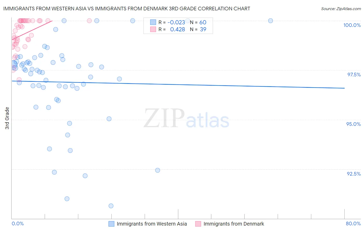 Immigrants from Western Asia vs Immigrants from Denmark 3rd Grade Correlation Chart