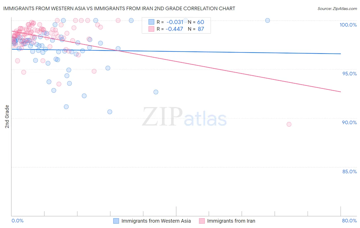 Immigrants from Western Asia vs Immigrants from Iran 2nd Grade Correlation Chart
