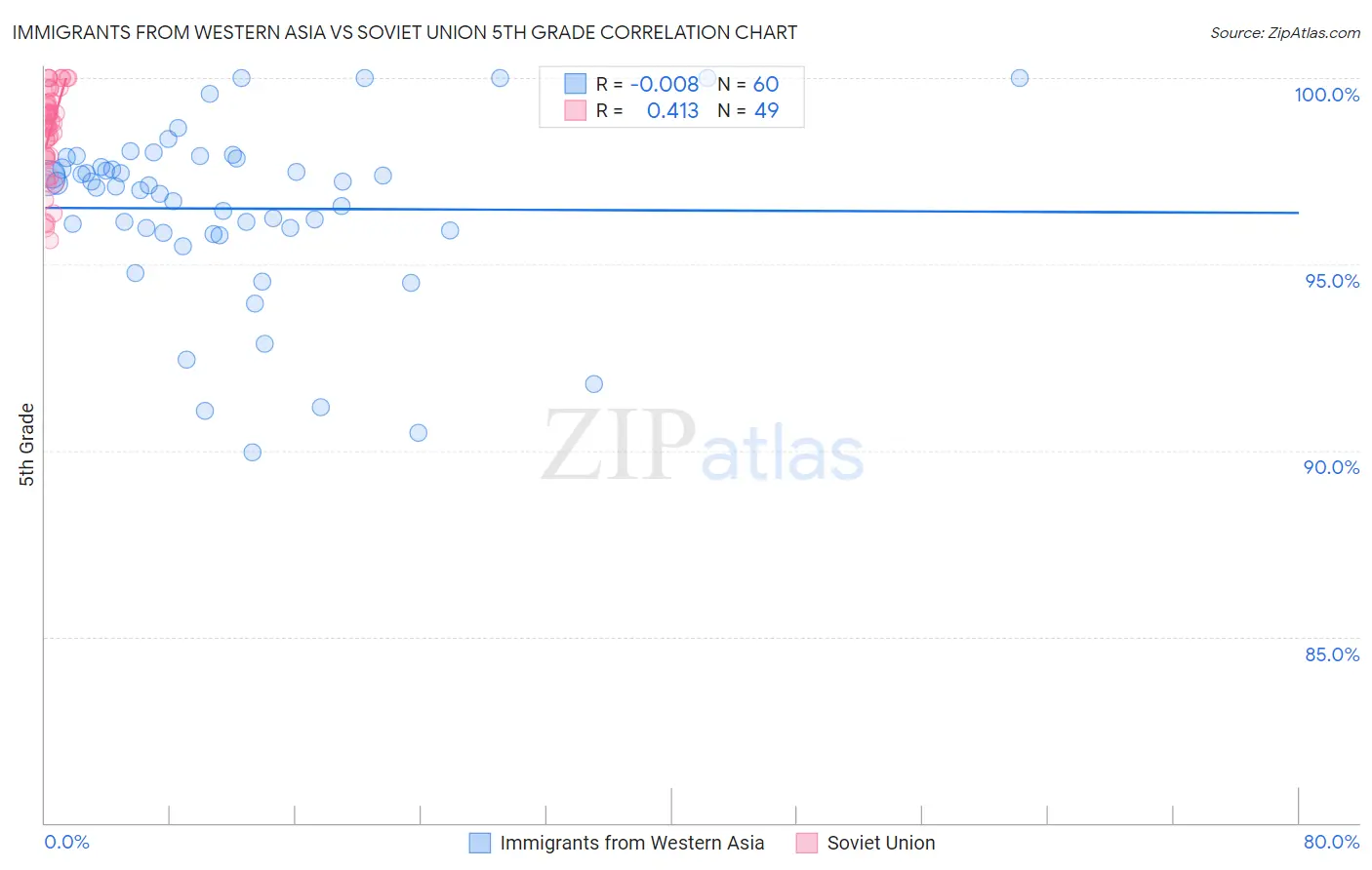 Immigrants from Western Asia vs Soviet Union 5th Grade Correlation Chart