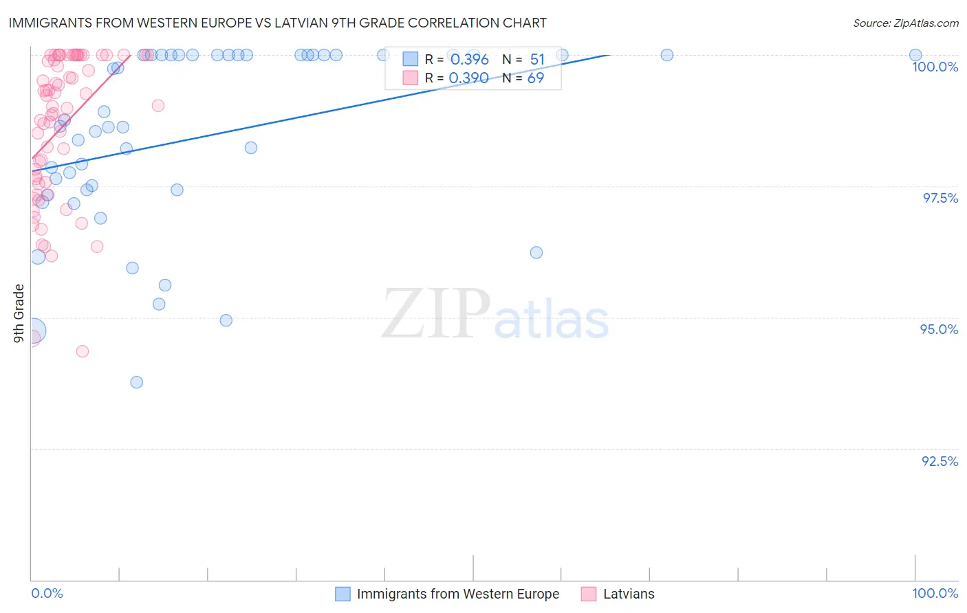 Immigrants from Western Europe vs Latvian 9th Grade Correlation Chart