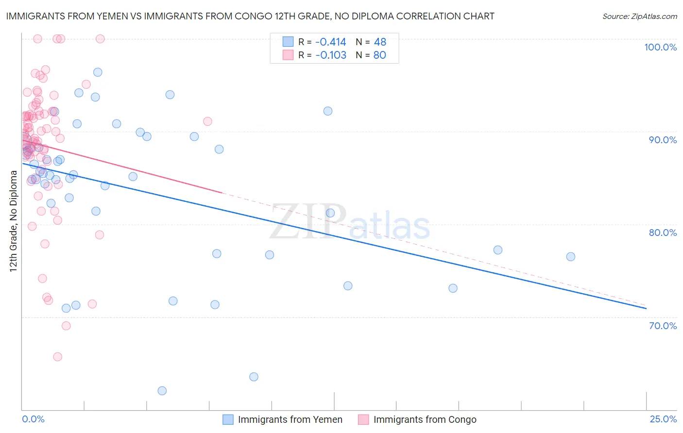 Immigrants from Yemen vs Immigrants from Congo 12th Grade, No Diploma Correlation Chart