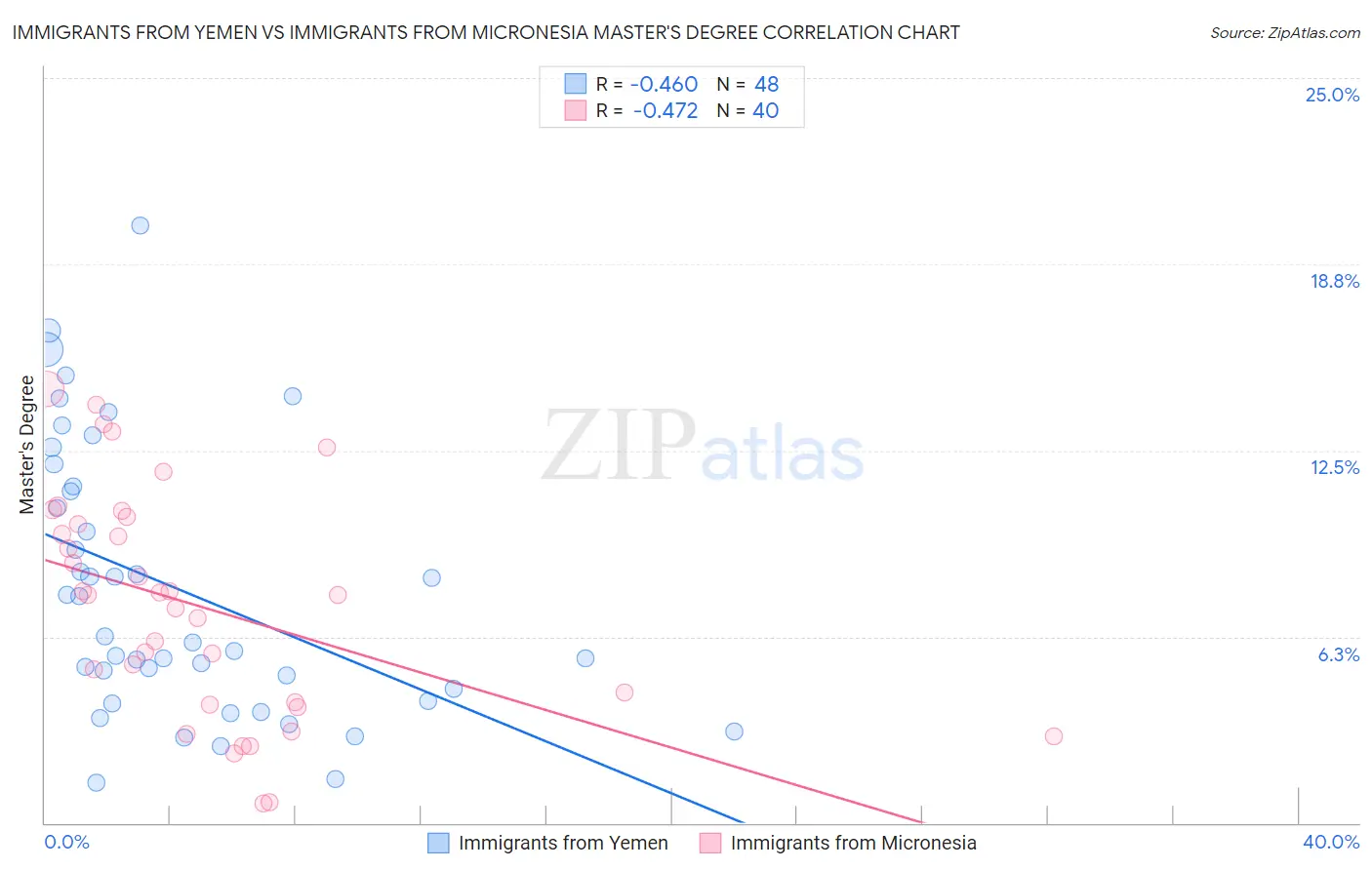 Immigrants from Yemen vs Immigrants from Micronesia Master's Degree Correlation Chart