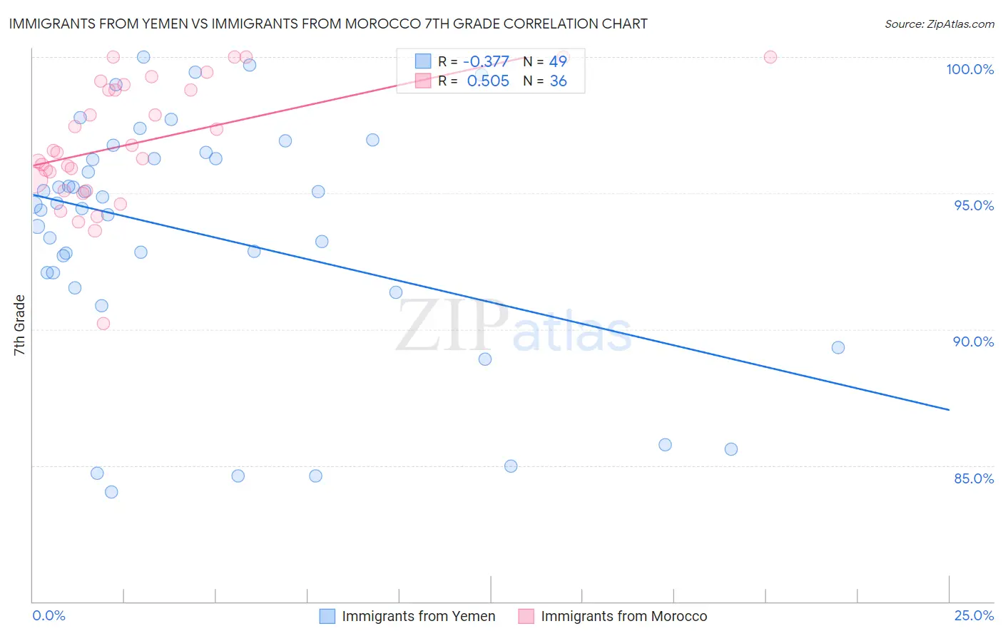 Immigrants from Yemen vs Immigrants from Morocco 7th Grade Correlation Chart