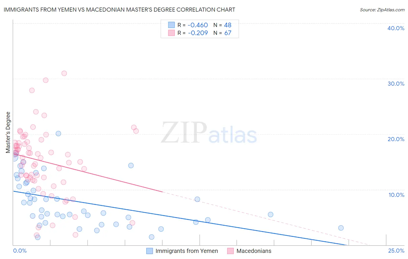 Immigrants from Yemen vs Macedonian Master's Degree Correlation Chart