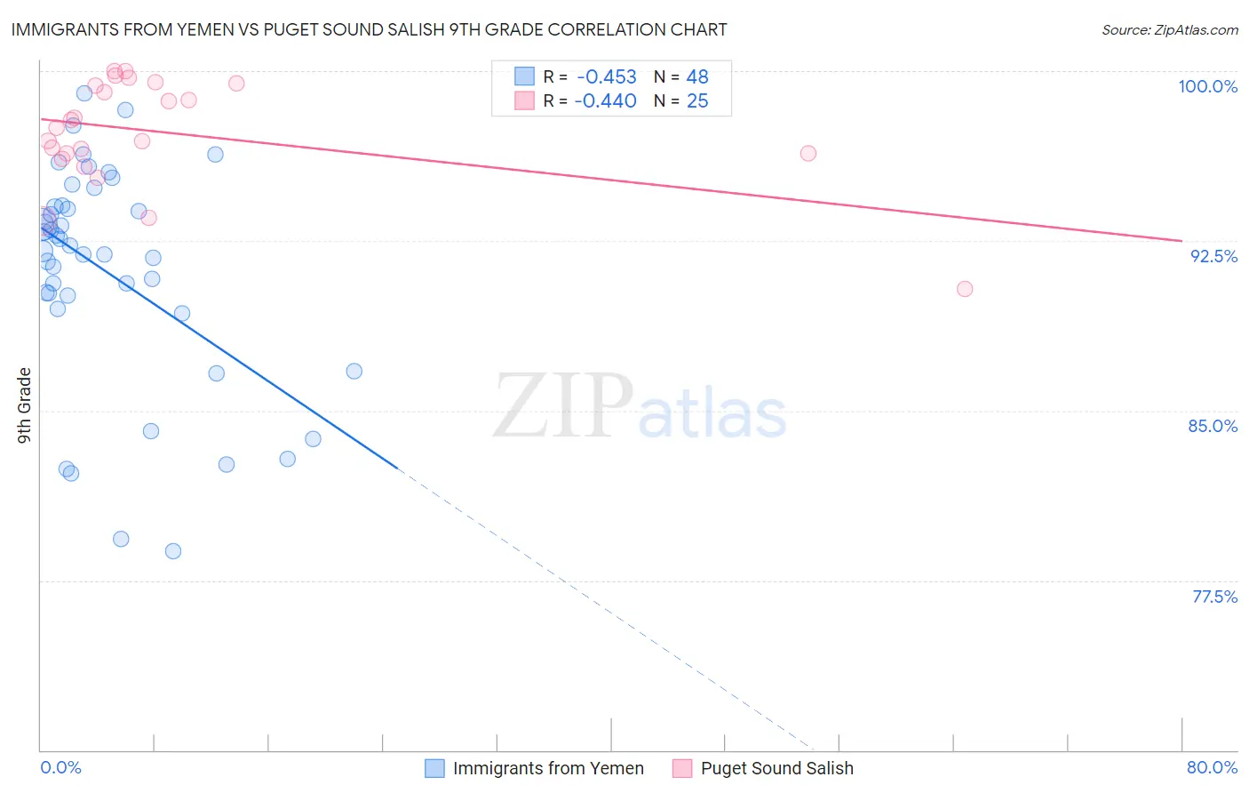 Immigrants from Yemen vs Puget Sound Salish 9th Grade Correlation Chart