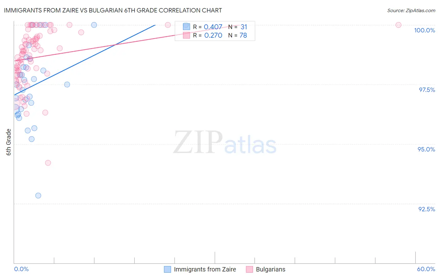 Immigrants from Zaire vs Bulgarian 6th Grade Correlation Chart