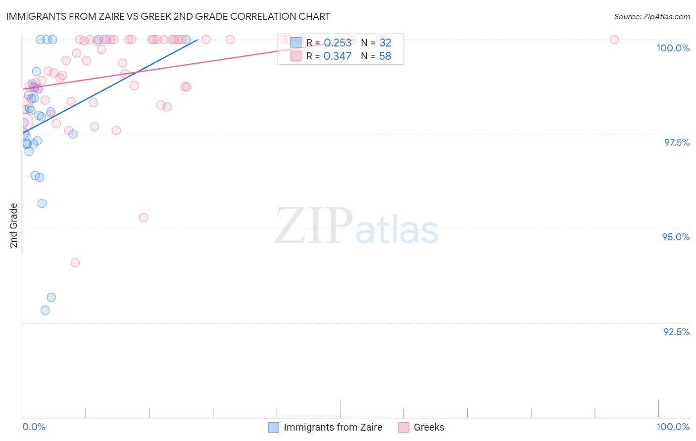 Immigrants from Zaire vs Greek 2nd Grade Correlation Chart