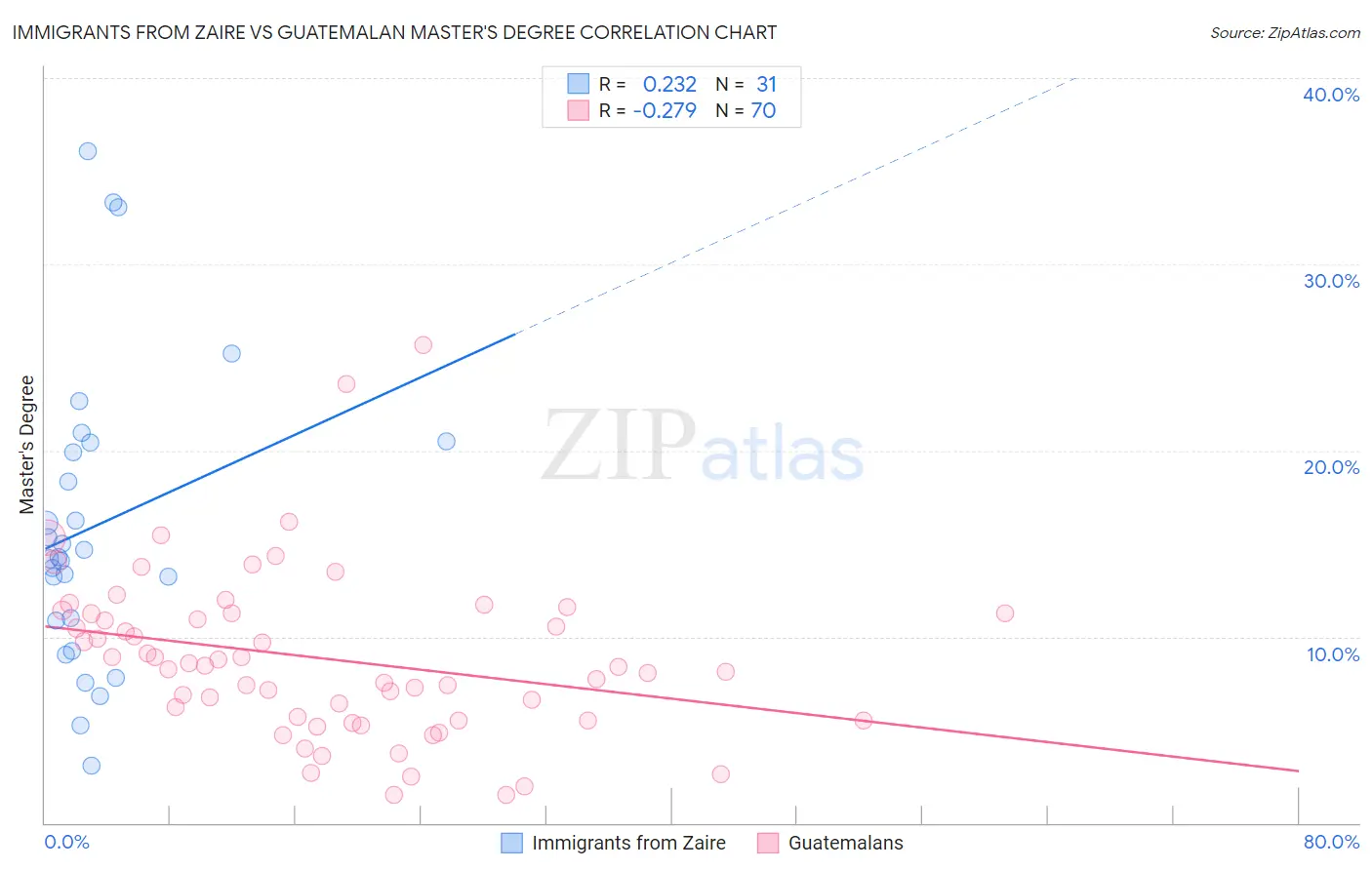 Immigrants from Zaire vs Guatemalan Master's Degree Correlation Chart