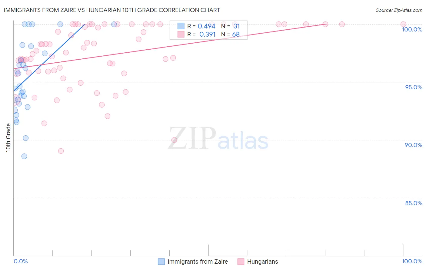 Immigrants from Zaire vs Hungarian 10th Grade Correlation Chart