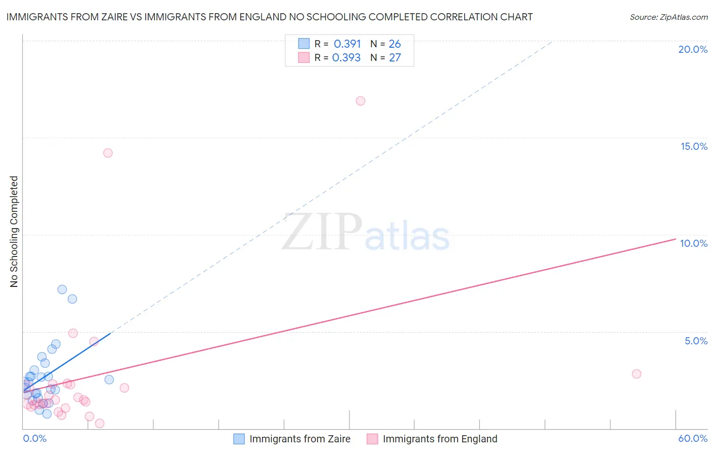 Immigrants from Zaire vs Immigrants from England No Schooling Completed Correlation Chart