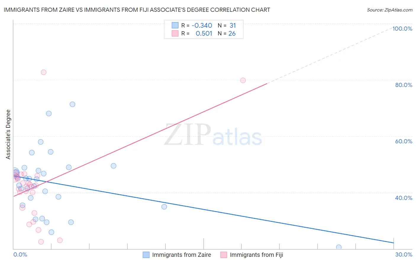 Immigrants from Zaire vs Immigrants from Fiji Associate's Degree Correlation Chart