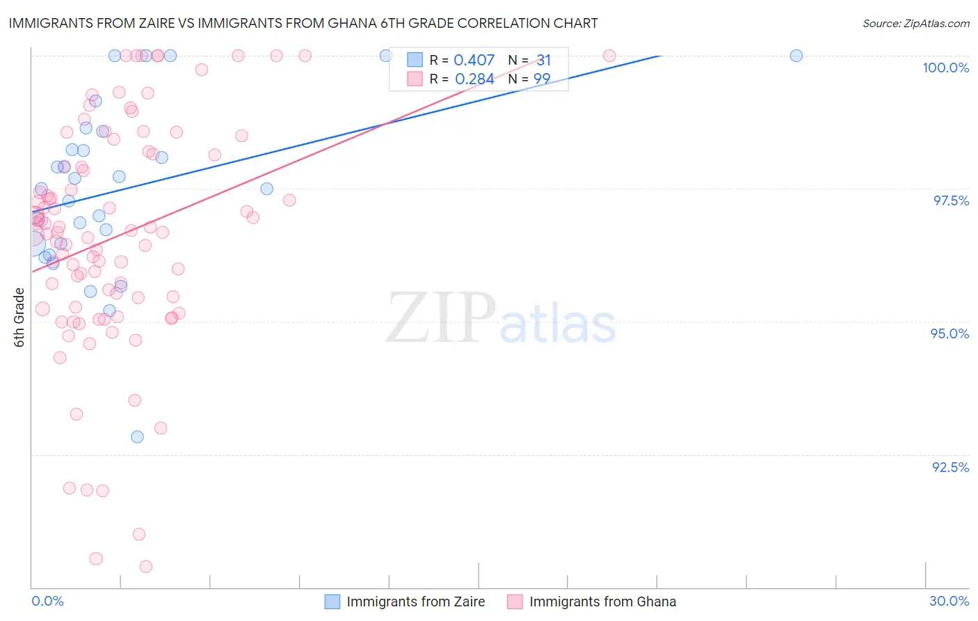 Immigrants from Zaire vs Immigrants from Ghana 6th Grade