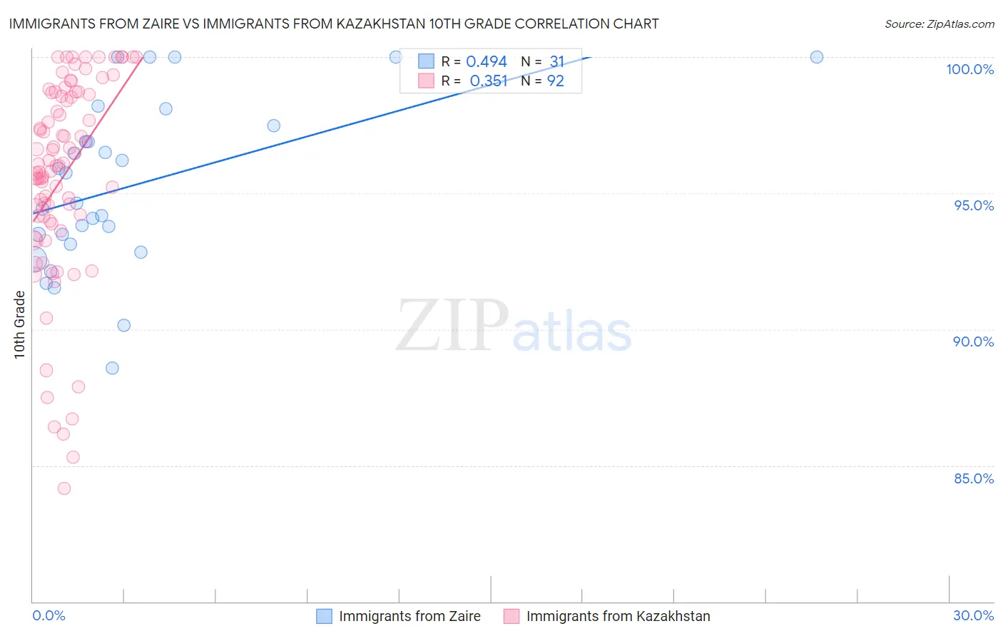 Immigrants from Zaire vs Immigrants from Kazakhstan 10th Grade Correlation Chart