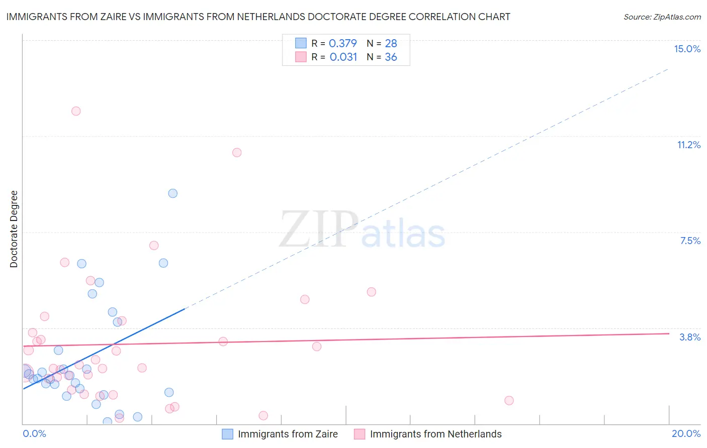 Immigrants from Zaire vs Immigrants from Netherlands Doctorate Degree Correlation Chart