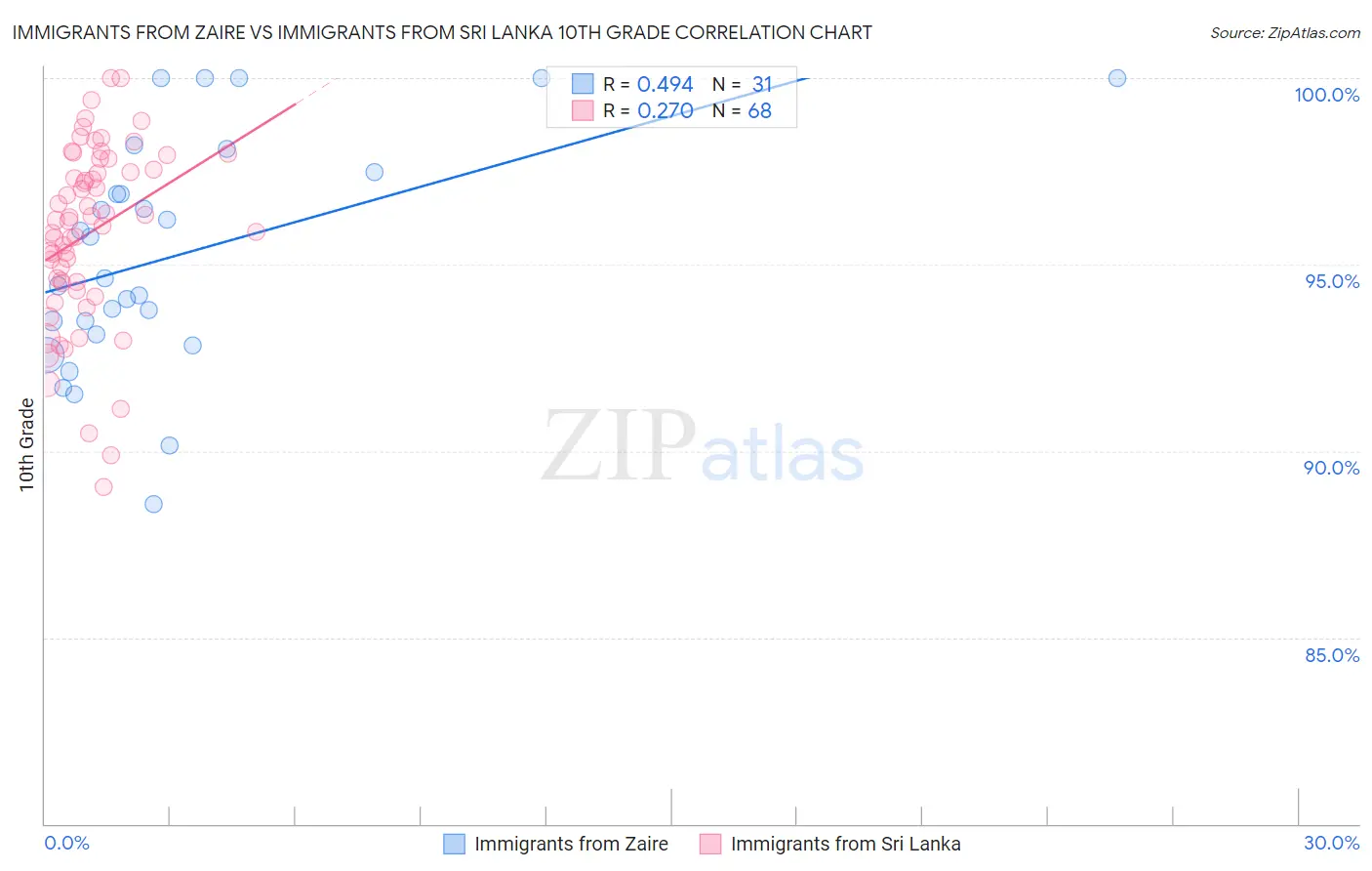 Immigrants from Zaire vs Immigrants from Sri Lanka 10th Grade Correlation Chart