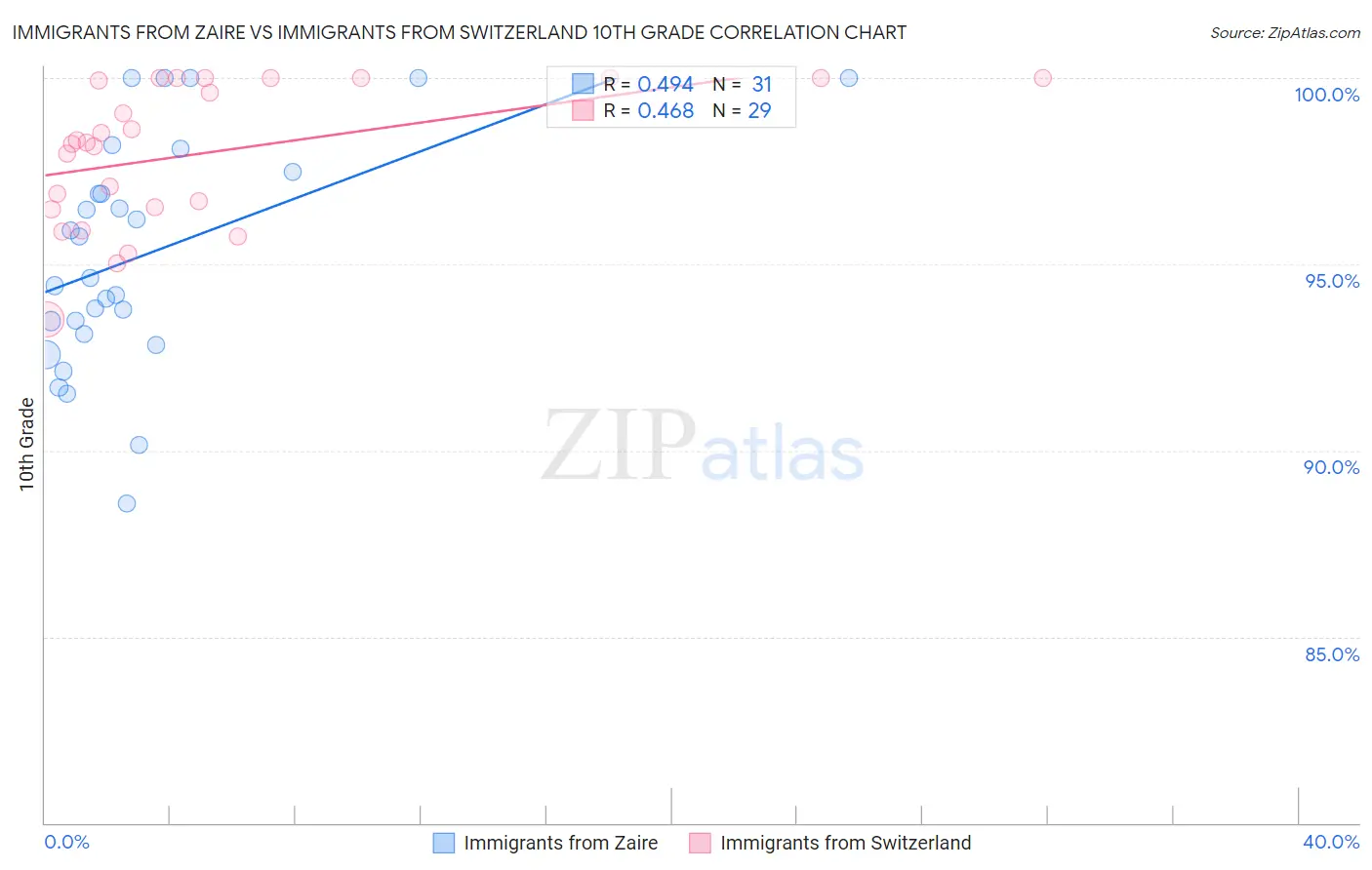 Immigrants from Zaire vs Immigrants from Switzerland 10th Grade