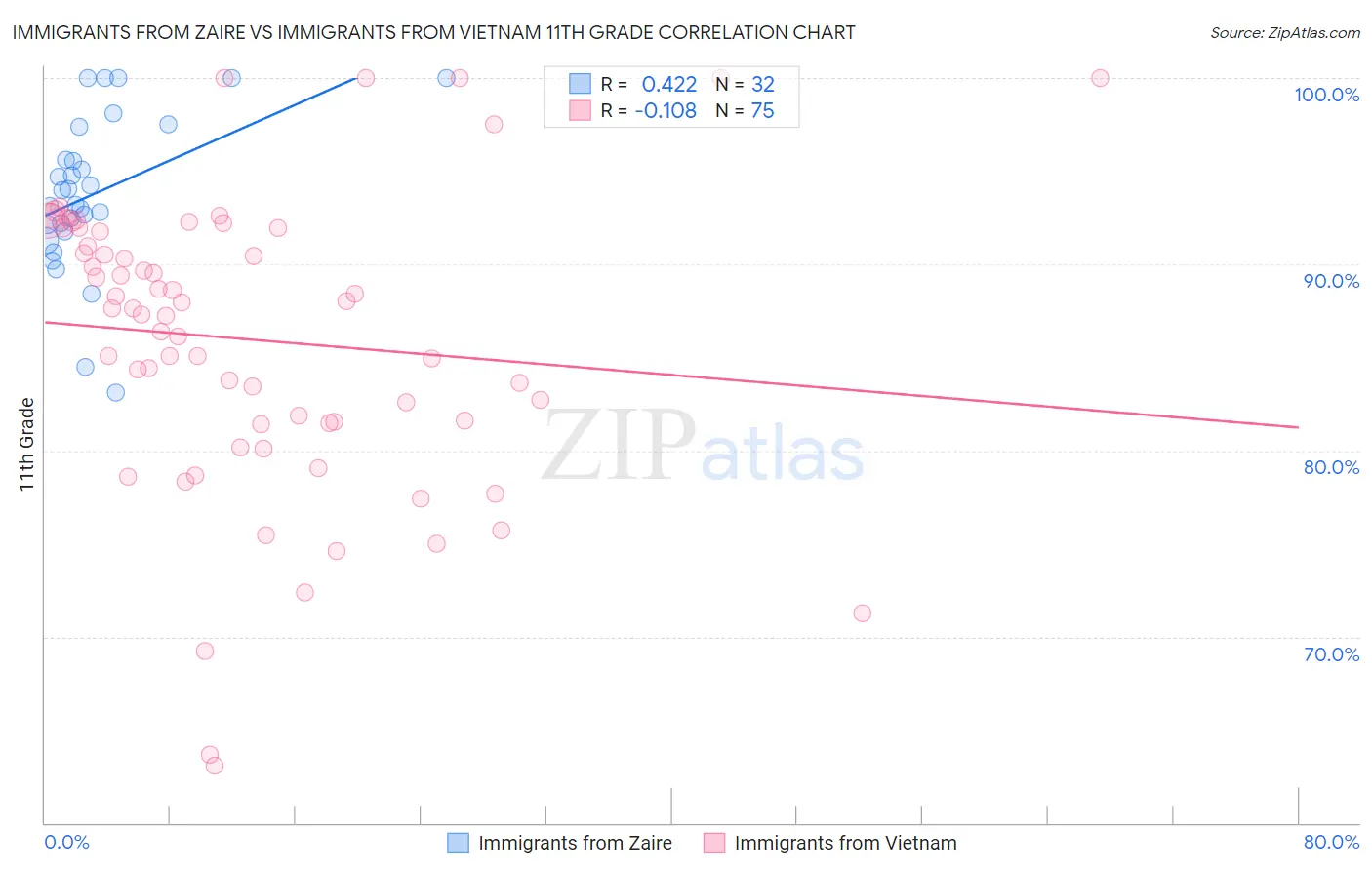 Immigrants from Zaire vs Immigrants from Vietnam 11th Grade Correlation Chart