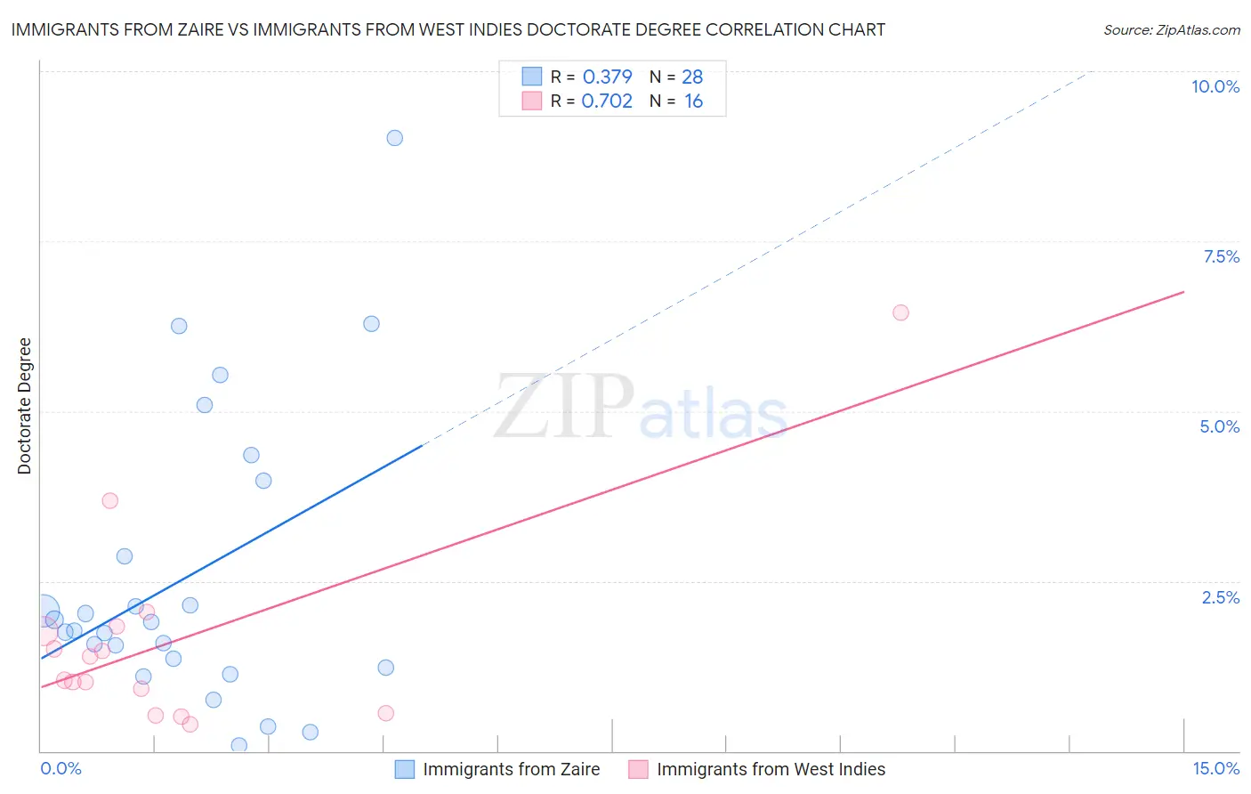 Immigrants from Zaire vs Immigrants from West Indies Doctorate Degree Correlation Chart