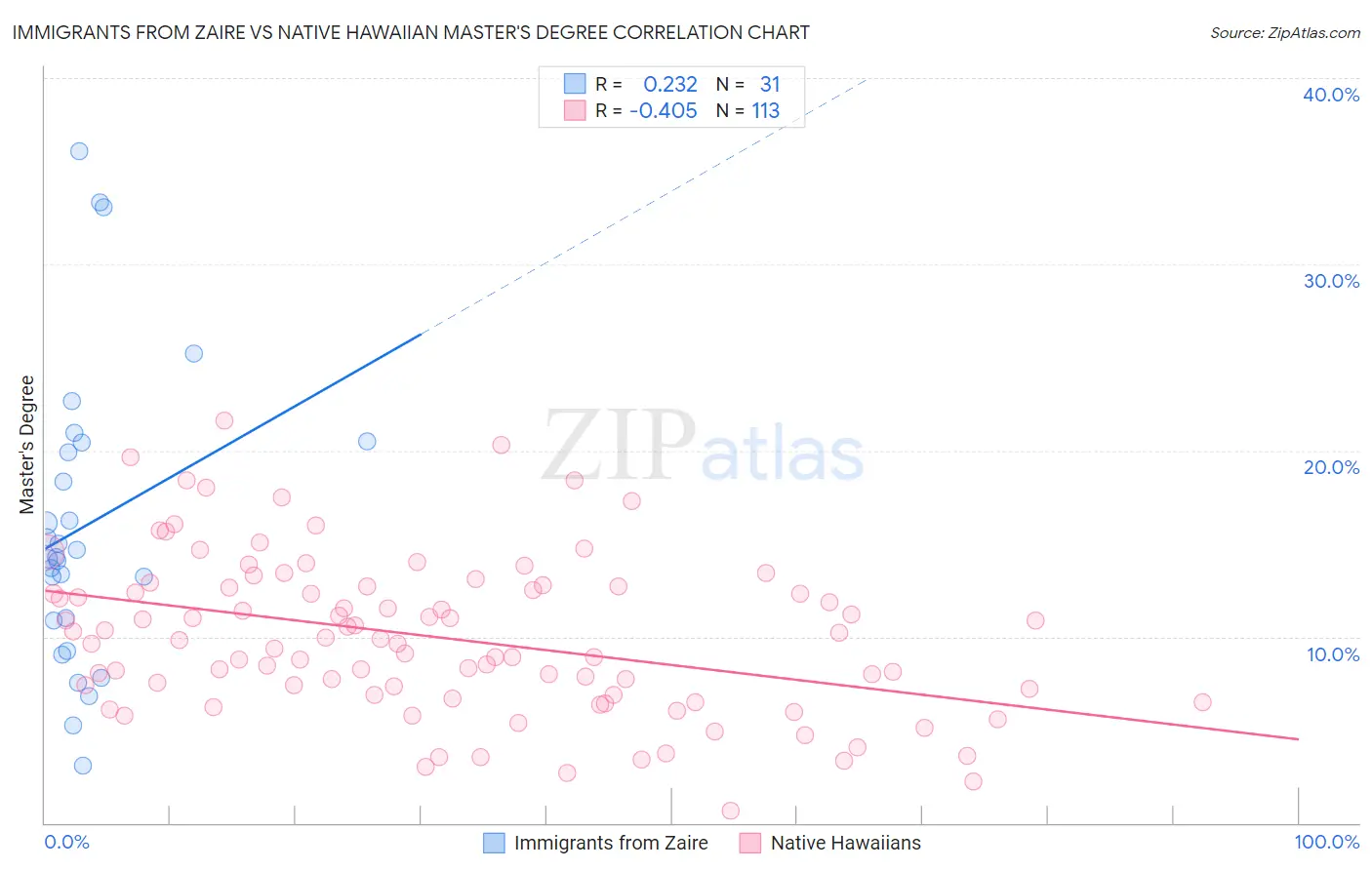 Immigrants from Zaire vs Native Hawaiian Master's Degree Correlation Chart