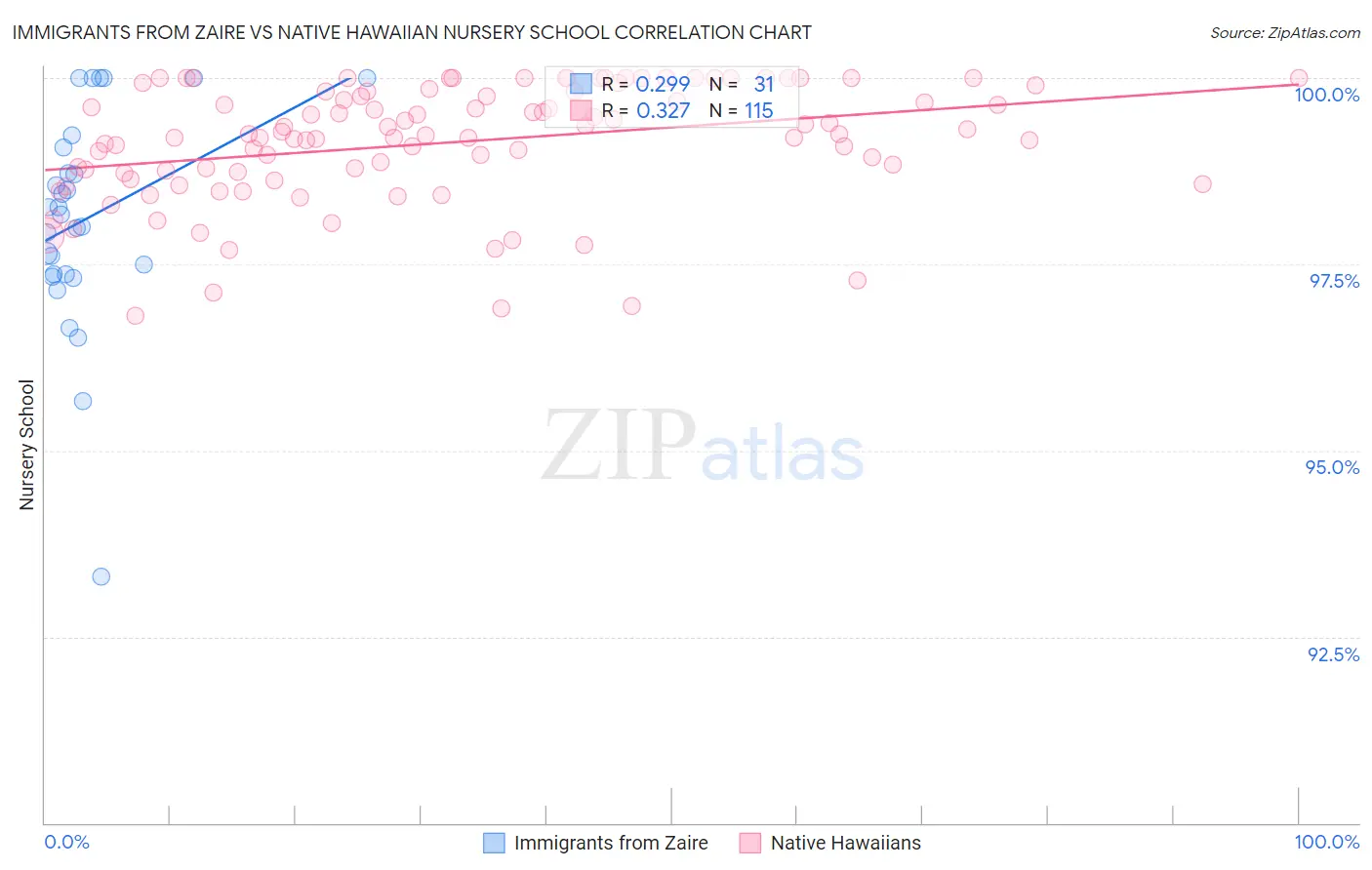 Immigrants from Zaire vs Native Hawaiian Nursery School Correlation Chart