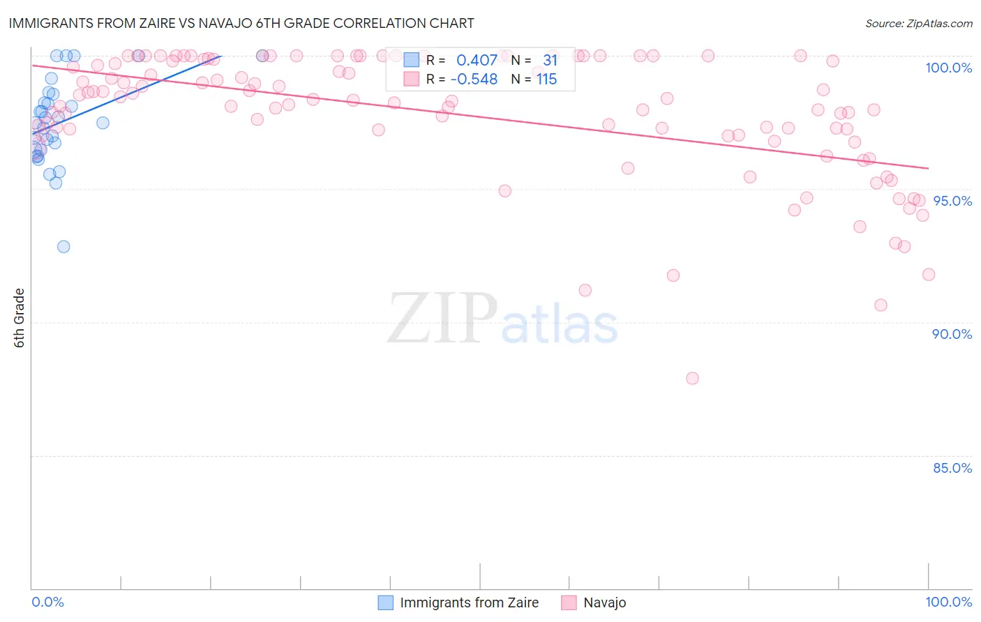 Immigrants from Zaire vs Navajo 6th Grade Correlation Chart