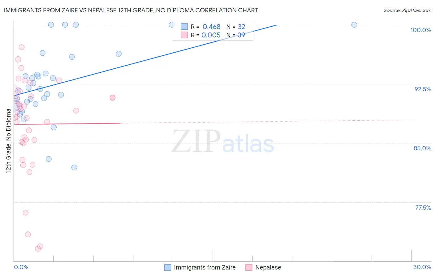 Immigrants from Zaire vs Nepalese 12th Grade, No Diploma